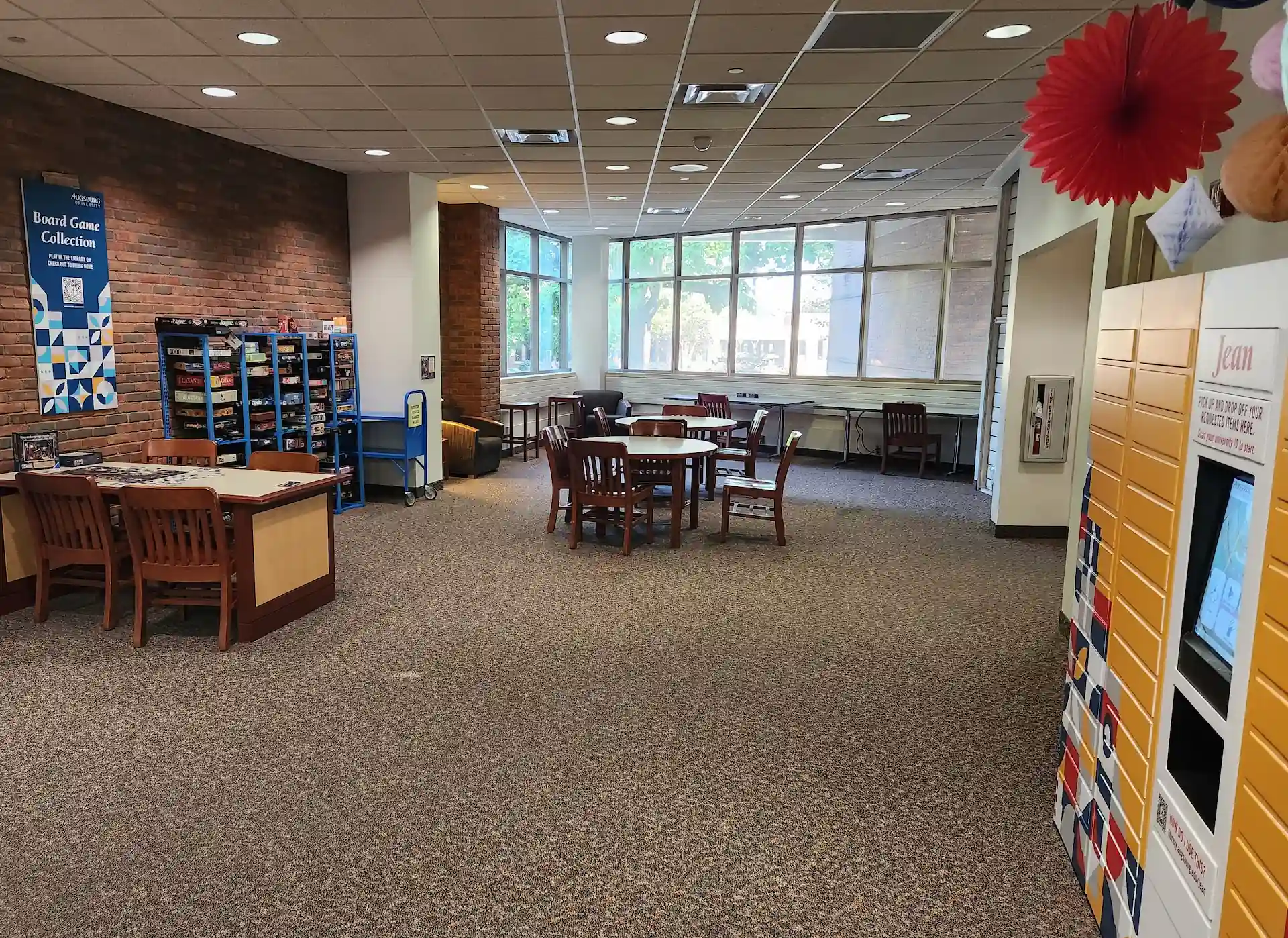 Library staff tackled other projects at the same time as migrating the catalog, such as refreshing the physical spaces to introduce more color, with new furniture to encourage gathering, and a board game collection that students can borrow or play while inside the library.